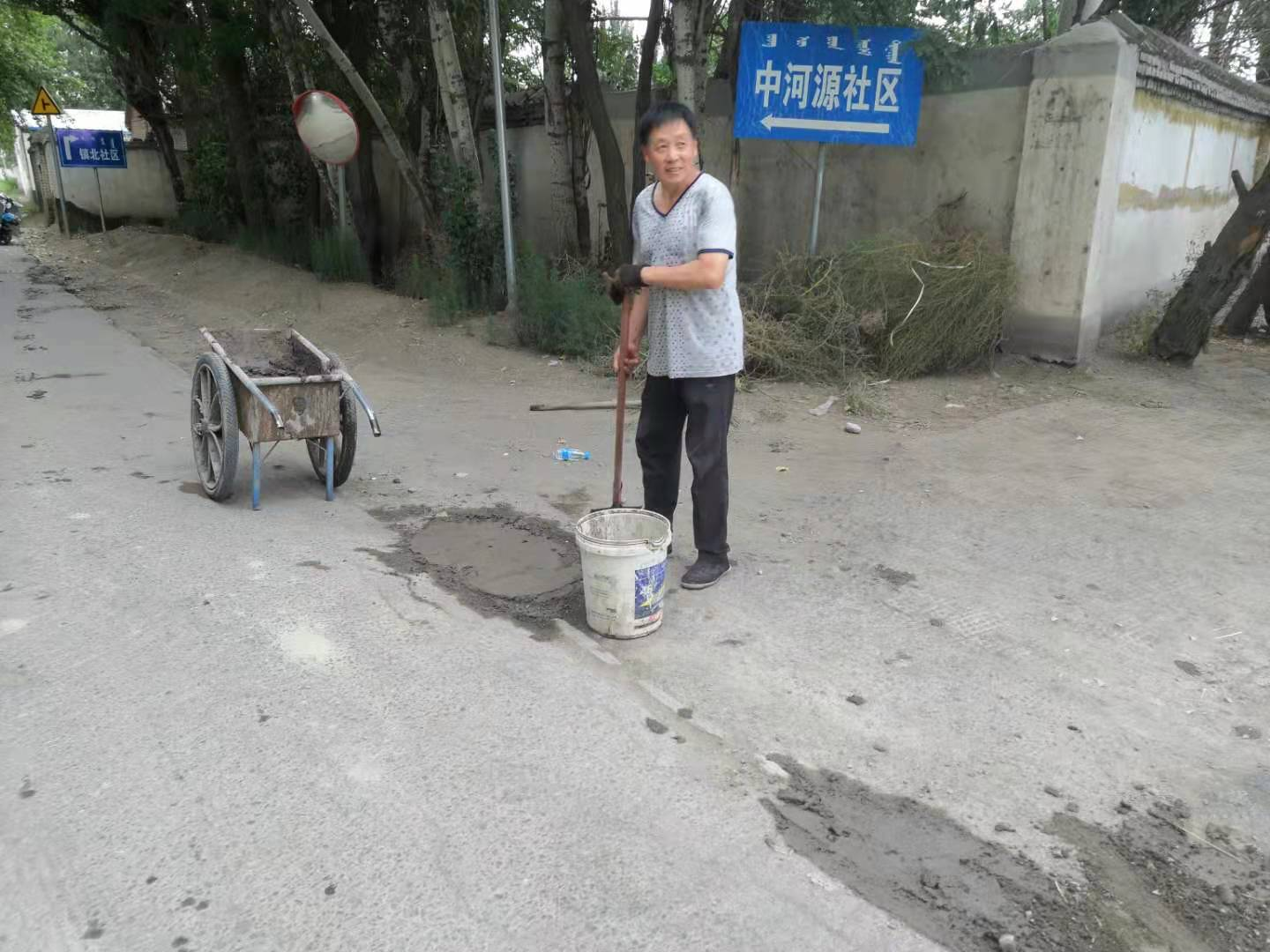 近年来,下海勃湾镇14路公交站附近路面经过车辆碾轧、沉降,多处出现裂缝破损,车辆经过特别颠簸,不但影响社区的环境卫生,也给居民的出行带来不便。8月20日,辖区内出现了一位好心人,他自费购买水泥,自行修整14路公交站附近破旧路面,原本坑坑洼洼的路面变得平整干净,为来往的车辆和行人解决了颠簸的问题,他就是海勃湾区三完小保安李大爷。