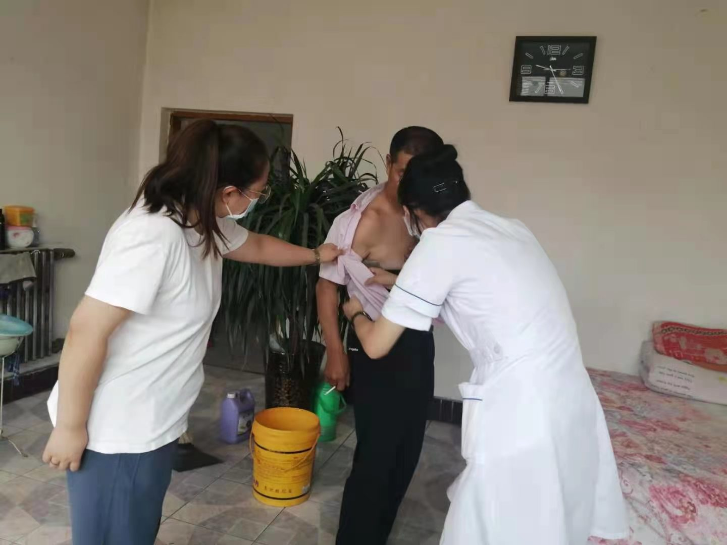 8月23日,镇北社区联合海区中医医院在职党员入户动员接种新冠疫苗,工作人员走进辖区内未接种新冠疫苗的居民家中,了解未接种原因,鼓励居民积极接种疫苗。
