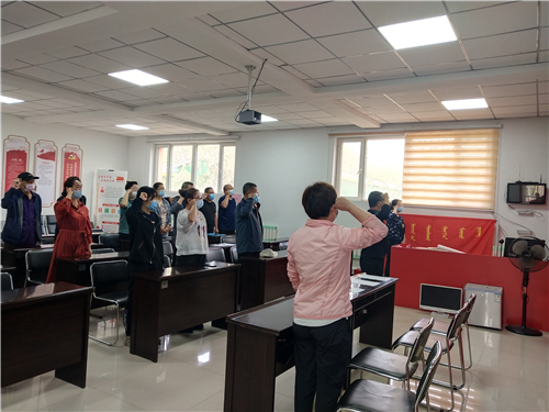 活动开始,全体党员齐唱国歌、重温入党誓词、学习党章党规、交纳党费固定环节之后,接着共同学习了习近平总书记关于民族团结的重要论述和关于“绿水青山就是金山银山”的“两山”发展理念,进一步提高了党支部凝聚力和向心力,同时使全体党员的环保意识、生态观念以及党性观念得到进一步加强,激发了党员群众做绿色先锋的自觉性,为打赢蓝天保卫战添砖加瓦。