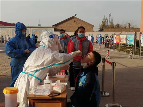 检测现场,教师、学生分时段、分年级错时有序进入检测区域,按照“一米线”间隔距离逐一经过体温检测、扫码登记、信息核查、核酸采样等流程。现场秩序井然、全程督查、分组检测。据统计,截止上午11时30分,共完成海勃湾区三完小、五幼以及衡实中学师生全部核酸检测858份。