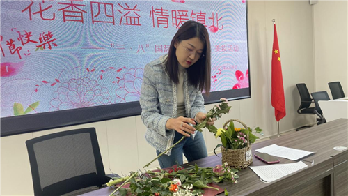 阳春三月,万物复苏。3月8日上午,滨河街道镇北社区开展“花香四溢 情暖镇北”—三.八国际妇女节插花、美妆主题活动。近40名来自各个行业的女性代表跟着花艺老师郭可昕学习插花艺术和美妆知识,了解花艺知识,用鲜花装扮属于女性的节日。