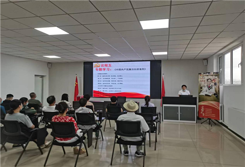 活动开始,全体党员齐唱国歌、重温入党誓词、学习党章党规、交纳党费之后,聚焦学习《中国共产党廉洁自律准则》,增强清正廉洁意识能力。最后的党日“+”活动所有党员共同观看红色电影《1921》。该影片以“横截面”视角切入,聚焦1921年前后的故事,全景式重现了百年前波澜壮阔、开天辟地的历史时刻,来自五湖四海的热血青年们,聚集上海召开中国共产党第一次代表大会,见证中国共产党的成立。